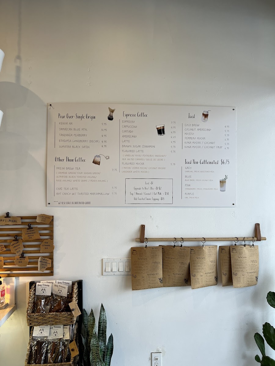 As you step inside, you are greeted by a cozy and inviting atmosphere, designed for both relaxation and productivity. The interior is beautifully crafted, making it a perfect spot to unwind or catch up with friends. Dog lovers rejoice—this pet-friendly café ensures that your furry companions are welcome, with bowls of water waiting just outside.